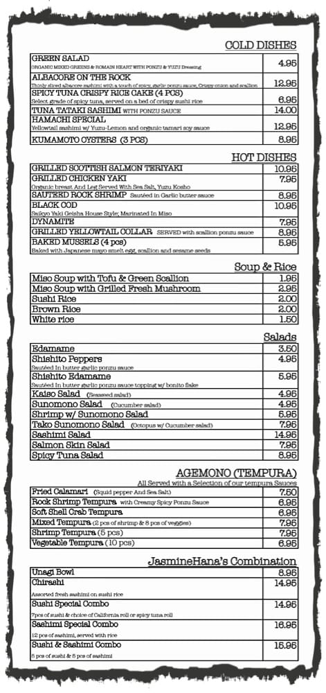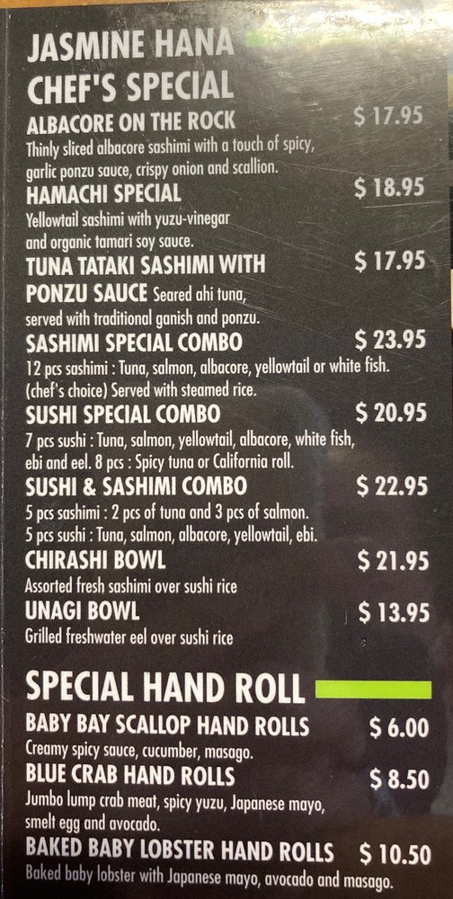 Introducing "Jasmine Hana," a vibrant dining destination offering a fusion of Ramen, Sushi, and Thai cuisine. Located in San Pedro, CA, this Asian and women-owned establishment provides a plethora of options for diners, including vegan and vegetarian choices. The menu features crave-worthy dishes like Pad Thai, Drunken Noodles, and a variety of appetizers like Fried Dumplings and Egg Rolls. The beverage selection includes refreshing Thai Iced Tea and Coffee. Customer reviews rave about the flavorful coconut Chicken Soup, Tom Yum Ramen, and the delectable sushi rolls. The warm and attentive service, combined with the charming ambiance, makes Jasmine Hana a must-visit spot for a delightful dining experience. Don't miss out on the happy hour specials, private dining options, and convenient amenities such as delivery and takeout. Experience the delicious flavors and welcoming atmosphere of Jasmine Hana today.